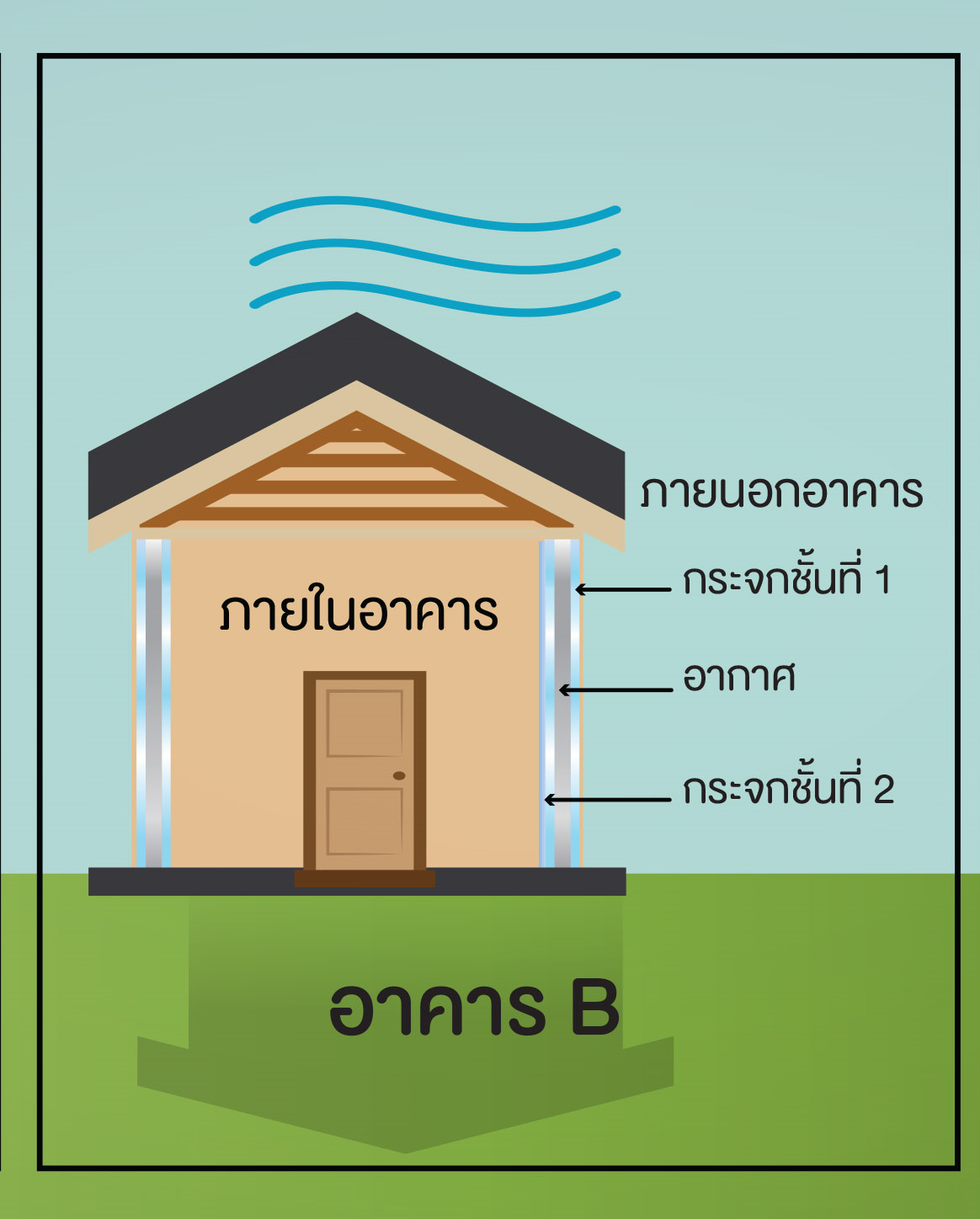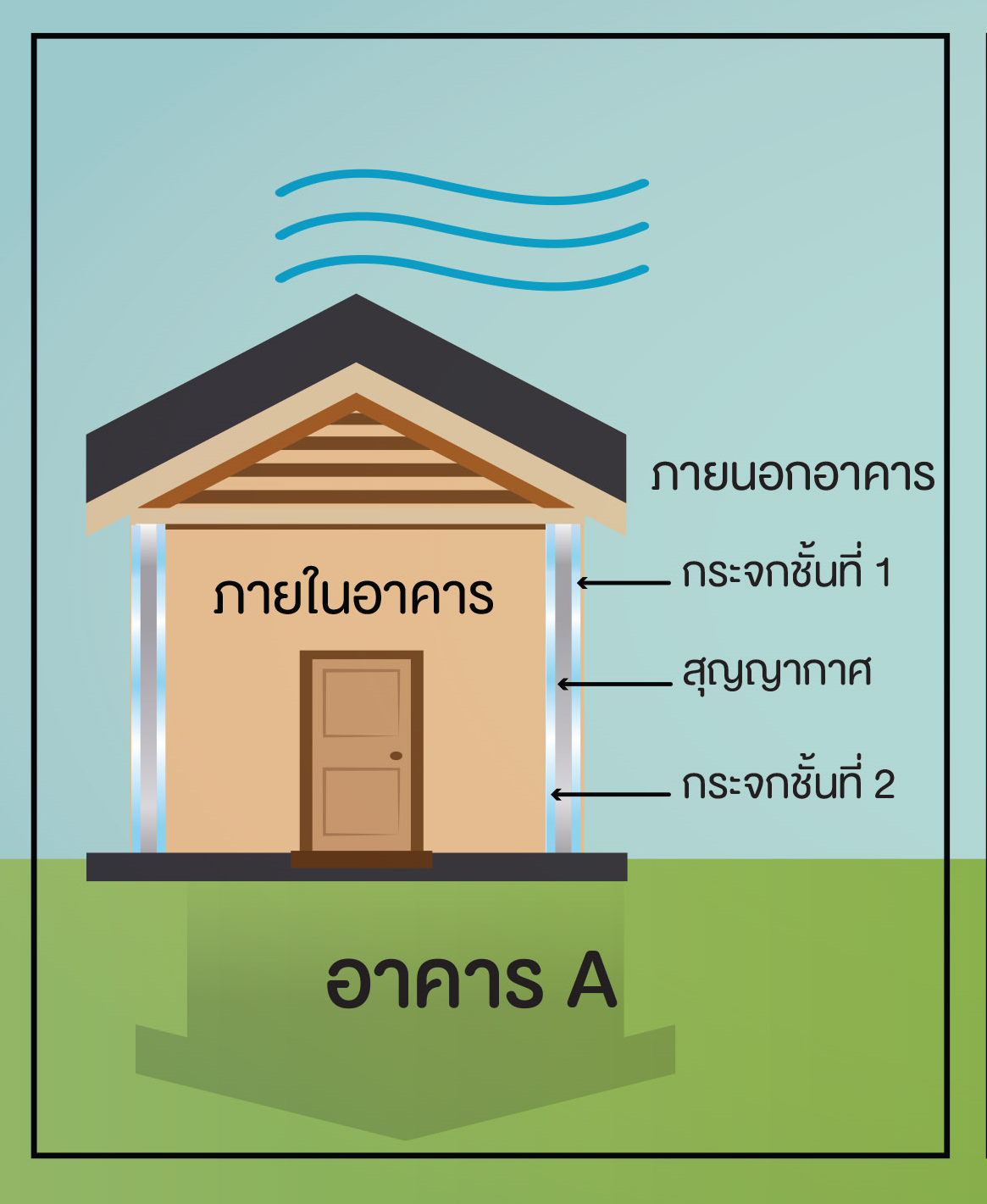 ผนังเป็นกระจก 2 ชั้นและช่องว่างระหว่างกระจกเป็นอากาศ