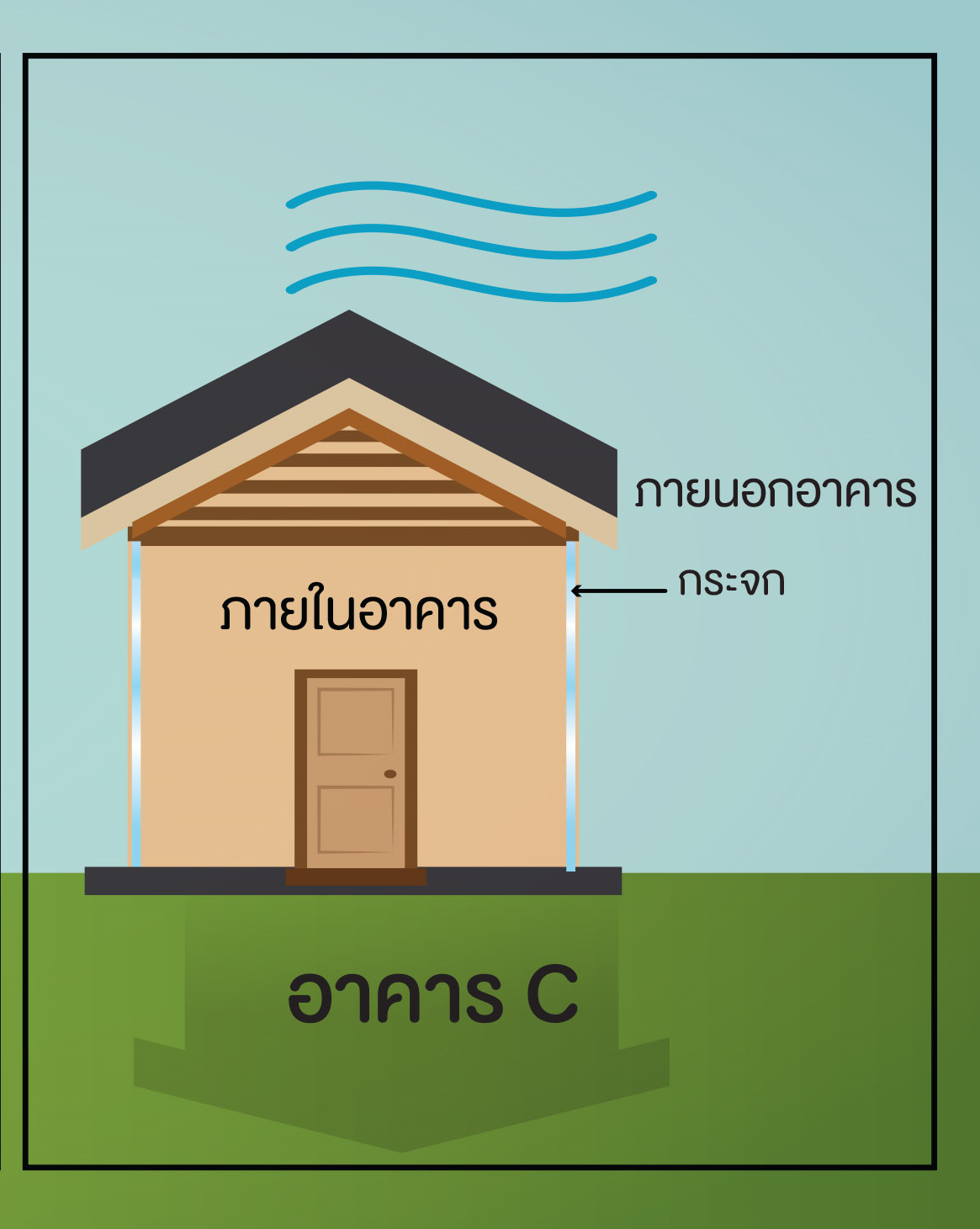 กำหนดให้ ขณะเริ่มต้น อุณหภูมิภายนอกอาคารทั้งสามเท่ากันและสูงกว่าภายในอาคาร
